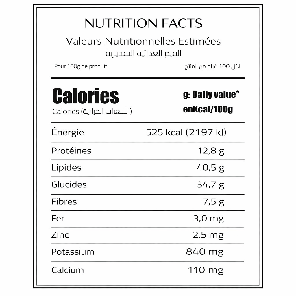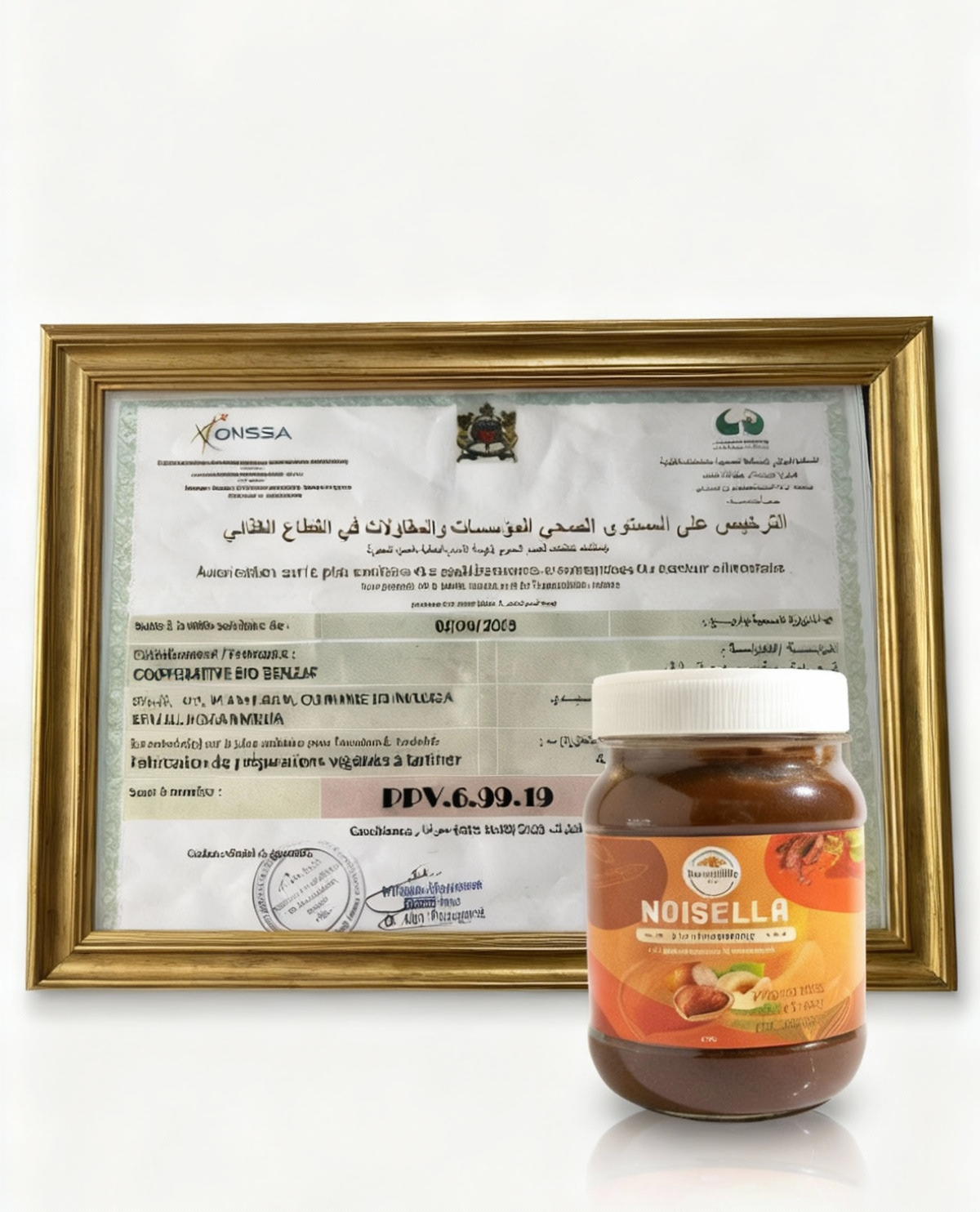 noisella est fabriqué dans un établissement autorisé par l'ONSSA (Office National de Sécurité Sanitaire des Produits Alimentaires), l'autorité marocaine de contrôle alimentaire. Cette certification garantit que notre processus de fabrication respecte les normes sanitaires les plus strictes et les bonnes pratiques de production. Qualité et sécurité contrôlées à chaque étape.